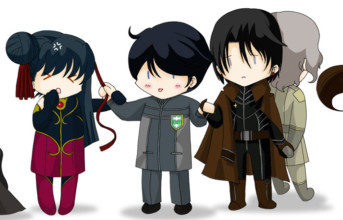 前にトォニィ大・中・小の1セット(?)を描いた時に、もう複数は当分描くまいと心に決めたのに、その後ソルジャー3人+人類3人セットを描いて、もうもうもーう絶対(←牛かよ)大人数はやめようと思ったのにこの始末。