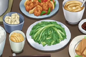 食べ物のアニメと言うと、宮崎アニメと黒の契約者だよ。