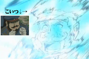 遠くから眺めてたくせに、アリシアが勝つと「(セルベリアを)捕まえろ!」と喜々として戦車で乗り込んで来た、この激しくむかつくおっさんもあの爆風に巻き込まれて吹っ飛んだので、ちょっと胸がスッとした自分が居ます。