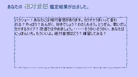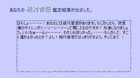 あ、相対音感ですが、あれはカラオケに行って歌が歌える人はみんな持ってるよ。