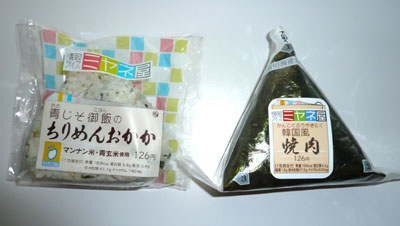 コンビニの定番、鮭・焼きタラコ・タラコ、あたりが好きなんですが、そっちの方がやっぱり好きかな。