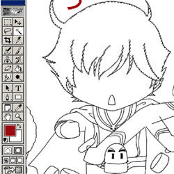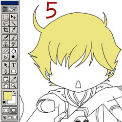 ジョミーの髪の色を選んで、ツールのバケツみたいな絵のやつ、あれで選択した所をポンとすると一気に全部が塗りつぶされた状態に。