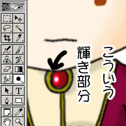 ここは白色に塗って、指先ツールと言うのでぼかしてもいいんですが、その指先ツールの横の黒い、視力検査の時に片目隠す時に使うようなマーク、それで宝石部分で輝かせたい部分をゴシゴシと。
