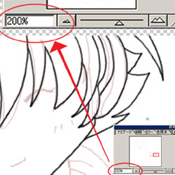 どのくらい大きいかと言うと、ナビゲータで大きさの尺度を変えられるんだけど、黒の一番重要な主線は200%~300%にして描いてます。