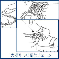 紐だらけだわ、チェーンは腕や体に巻き付いてるわで。