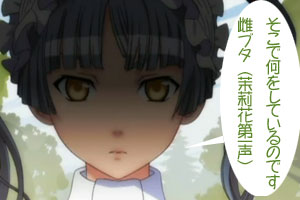 学園に転校して来たかなこが、学園内にある私有地(理事長の家とかがあるっぽい)に迷い込み、道を聞こうと向こうからやって来たメイド服の茉莉花に声をかけた時の、第一声。